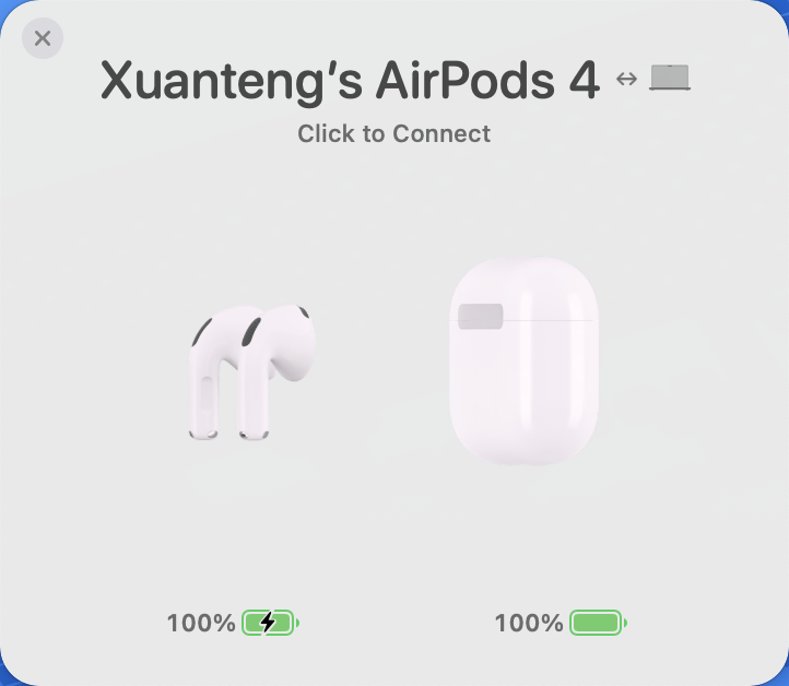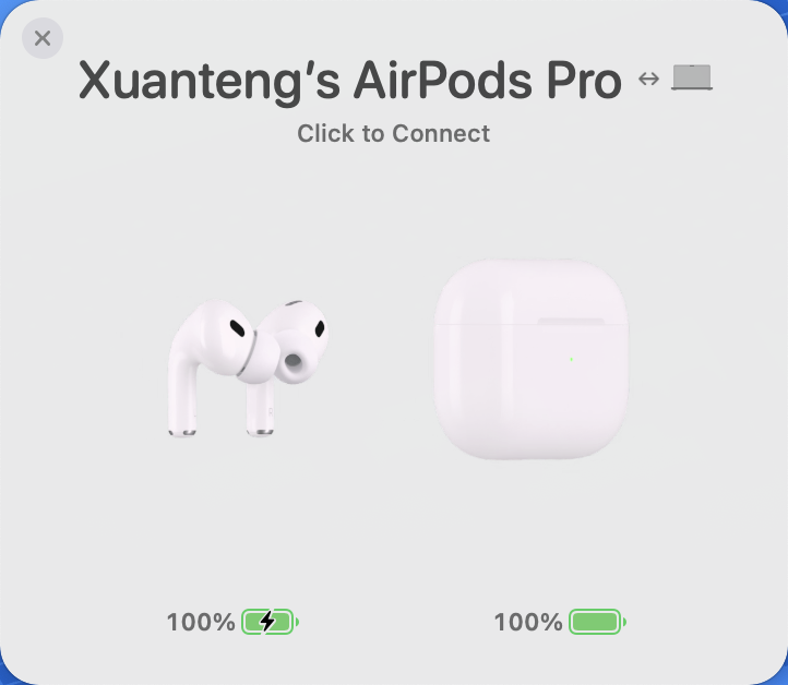 有时候你的耳机正连接着手机播放音频,而这时候如果你在电脑上播放视频,AirPods 会自动检测到新的音频输出而自动切换到 macOS 上进行播放,但有时候这个自作聪明的设计偏偏适得其反,我就是想让耳机播放手机的音频输出。 Air Buddy 在耳机切换到电脑的时候会弹出一个窗口,防止此时正在播放手机音频的耳机切换输入源到 macOS 上。