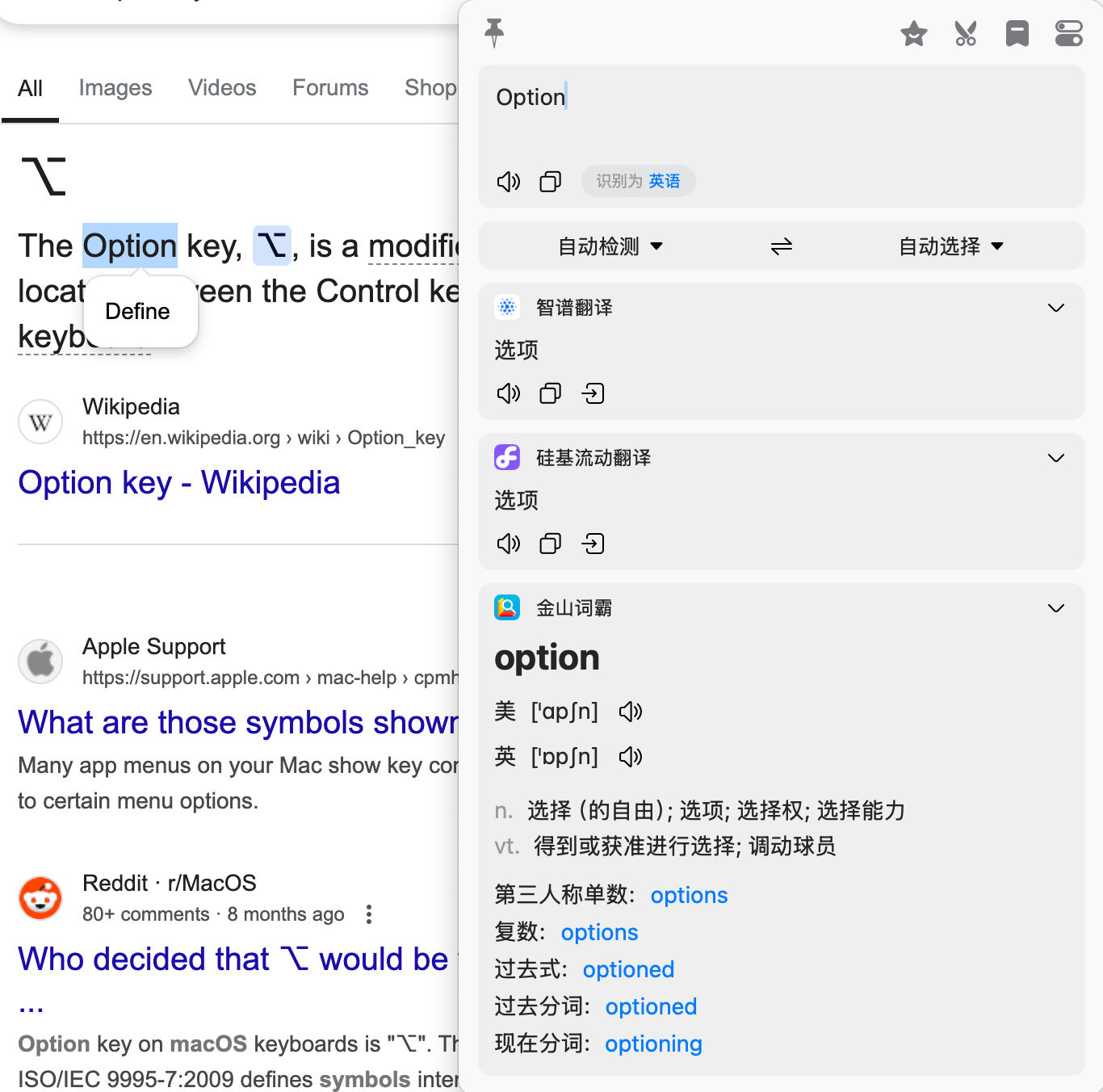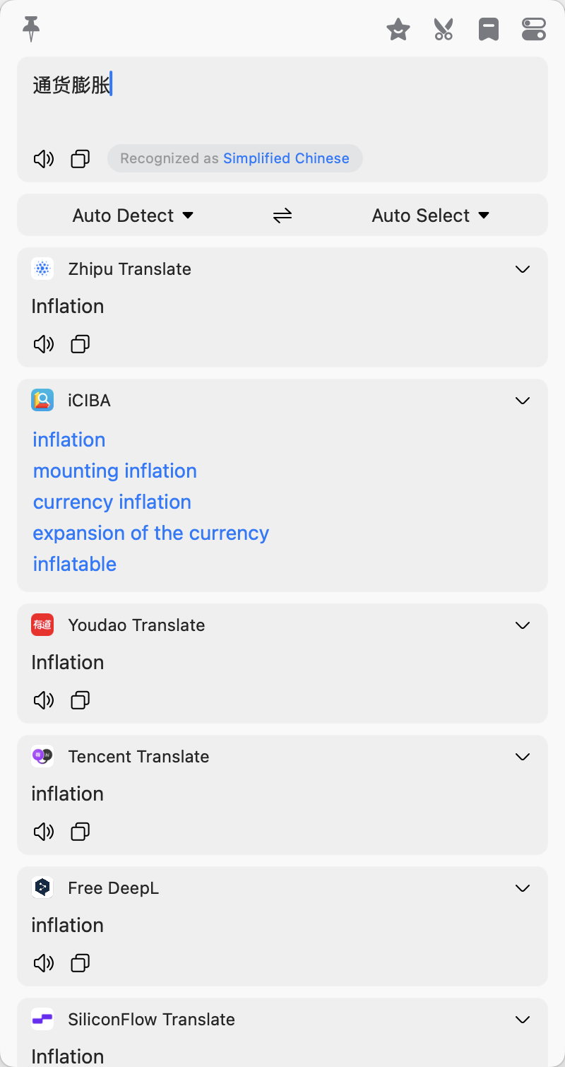 例如,系统的任意界面(浏览器、或者是使用 Zotero 看论文时)在遇到一个不懂的单词时,可以选中它然后按下 ⌥ + d 快捷键进行翻译。 除了取词之外,这种划词 + 后续操作的应用在大模型时代还可以衍生出更多的玩法,也可能是一个新型的流量入口(例如 AI + 搜索)。